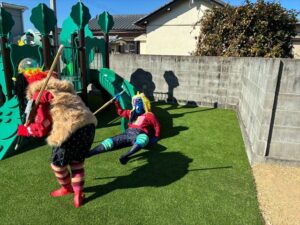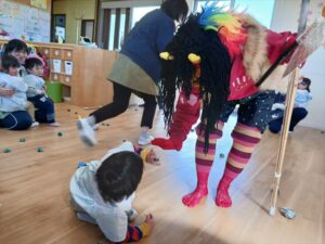「 鬼は外!!鬼は外!! 」と、豆を投げる勇敢なお友だちも👏✨